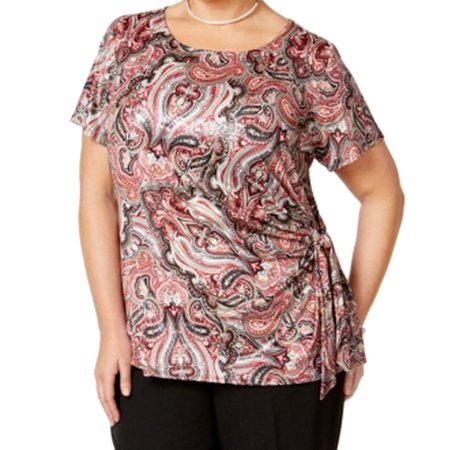 MSK NEW Red Women's Size 3X Plus Side Tie Paisley Printed Blouse