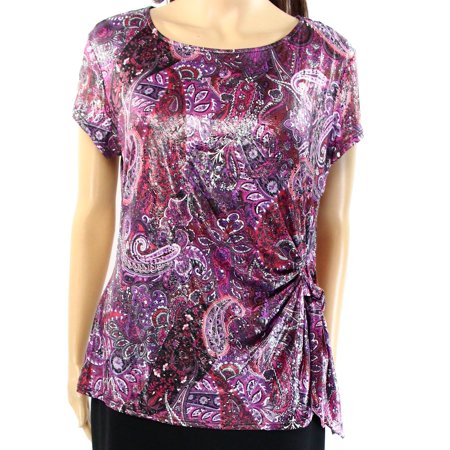 MSK NEW Purple Womens Size Medium M Paisley Metallic Side-Tie Blouse