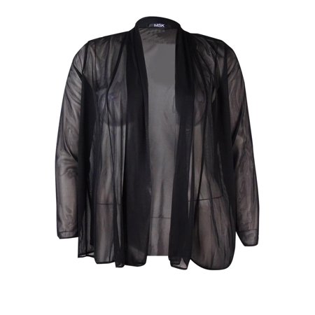 <li>Polyester</li> <li>No lining</li> <li>Open front-no closure</li> <li>Long sleeves</li> <li>Sheer chiffon fabric</li> <li>Country of Origin: United States</li> <li>MSRP: $39.00</li>
