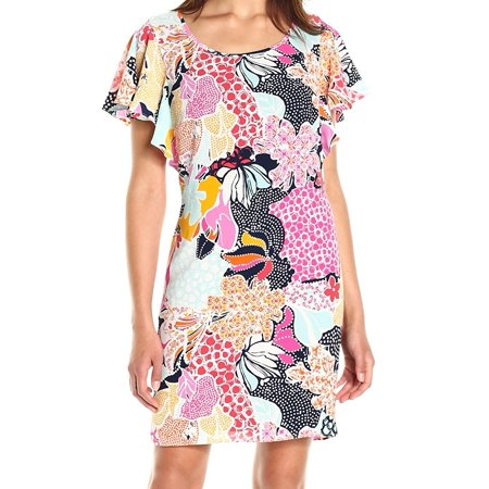 MSK NEW Pink Floral Printed Flutter-Sleeve Womens 14 Crepe Shift Dress