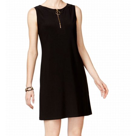 MSK NEW Deep Black Women's Size 16 Crew Neck Zip Front Shift Dress