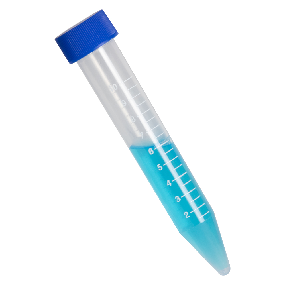 10mL Sterile Clear Polypropylene Centrifuge Tube with Blue Screw Cap & Printed Graduations - 50 per Bag; 20 Bags per Case