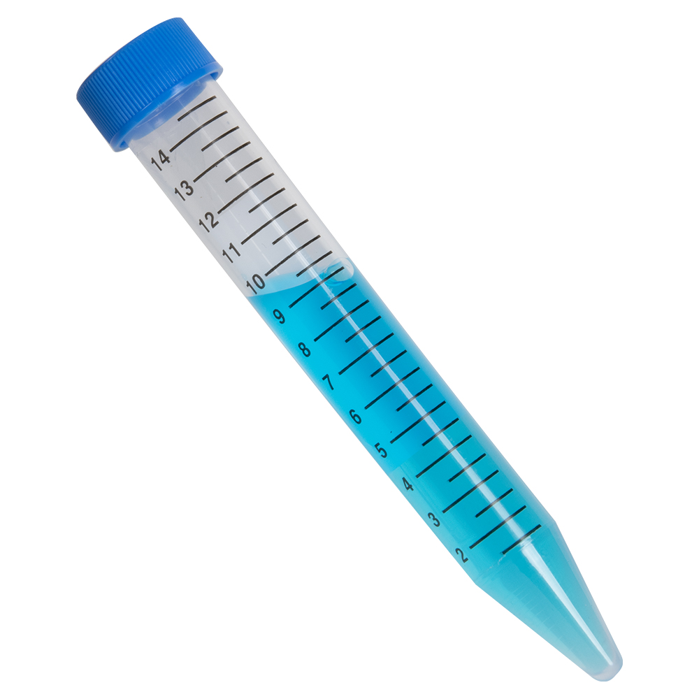 15mL Sterile Clear Polypropylene Centrifuge Tube with Blue Screw Cap & Printed Graduations - Individually Wrapped; Case of 300