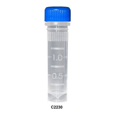C2230, SureSeal? 2.0mL (12.8 x 46mm) Microcentrifuge Tube, w/ screw-cap, w/ O-ring, molded graduations, self-standing, caps assembled (case of 1000)