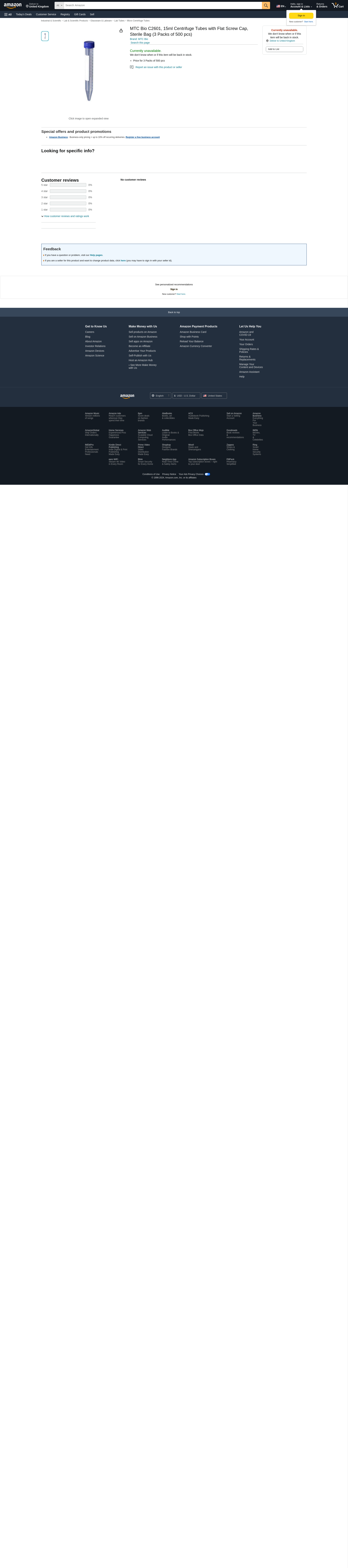 MTC Bio C2601, 15ml Centrifuge Tubes with Flat Screw Cap, Sterile Bag (3 Packs of 500 pcs)