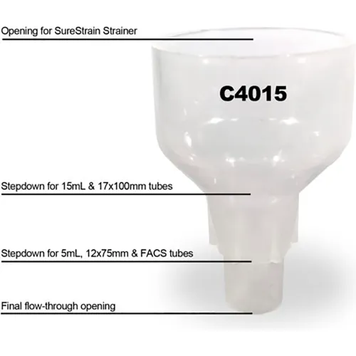 <p><strong>C401, Reducing Adapter for use with 15mL, 17x100mm, 12x75mm and 5mL conical tubes, (Patent Pending)</strong></p>
