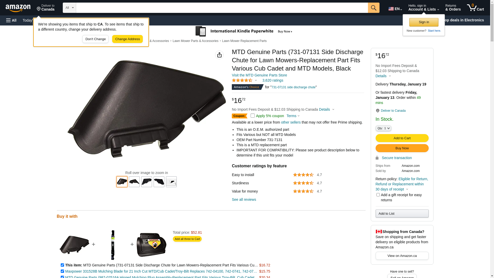 MTD Genuine Parts 731-07131 Replacement Side Discharge Chute for Lawn Mowers, Black