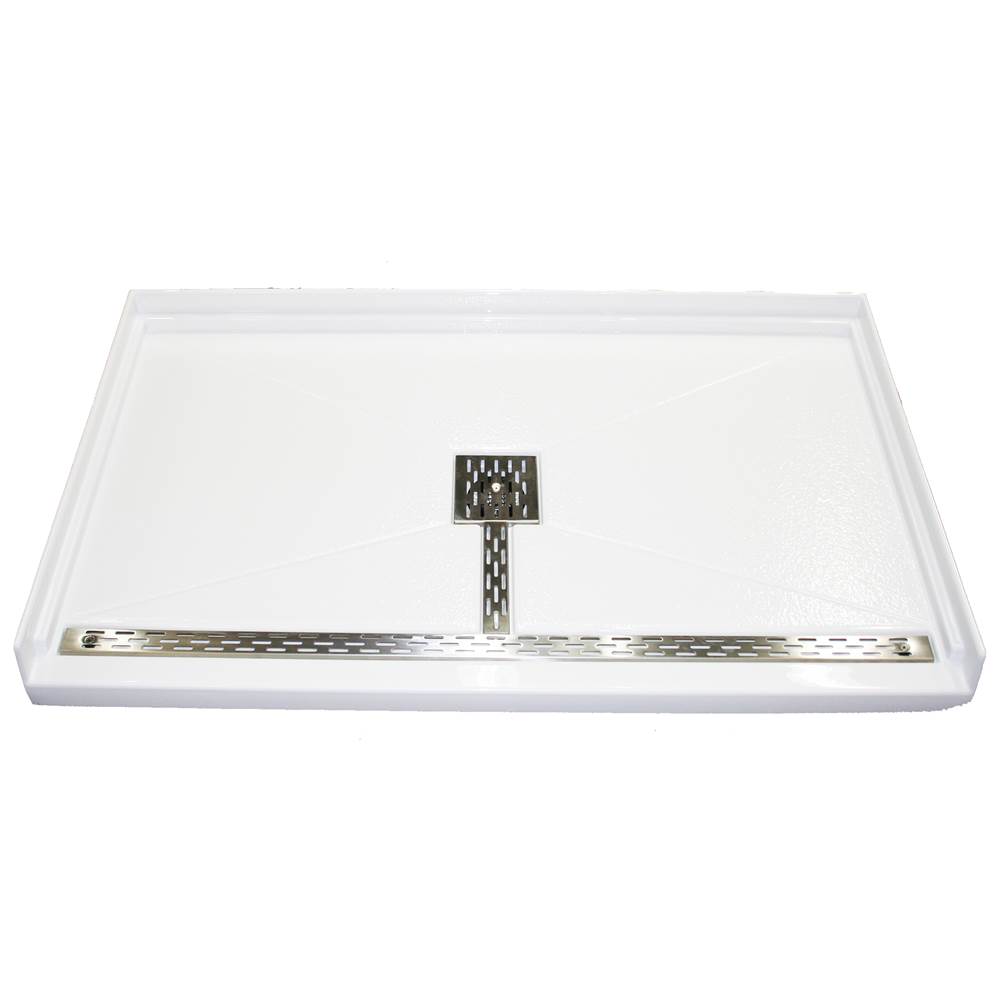 MTI Baths - SB6336BF-BI - 6366 Acrylic Cxl Barrier Free Center Drain 63'' Threshold 3-Sided Integral Tile Flange - Biscuit