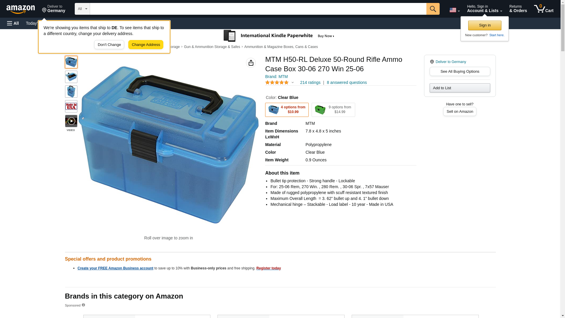 MTM H50-RL Deluxe 50-Round Rifle Ammo Case Box 30-06 270 Win 25-06, Clear Blue, Model:H50-RL-24