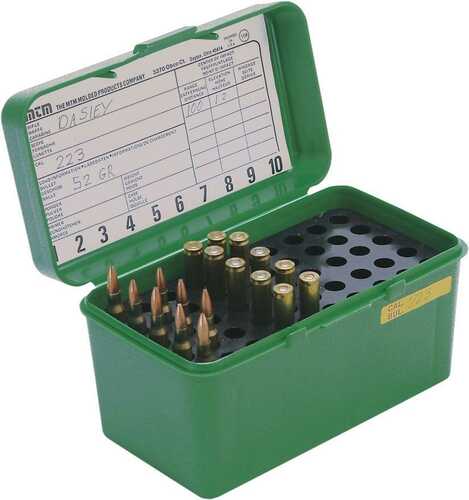 MTM H50-RM Deluxe 50-Round Rifle Ammo Box 220 Swift 22-250 243 308 Win, Green