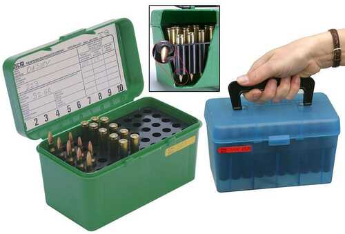 MTM Deluxe Ammunition Box 50 Round Handle 223 Rem 204 Ruger Clr Blue H50-RS-24 - 58047
