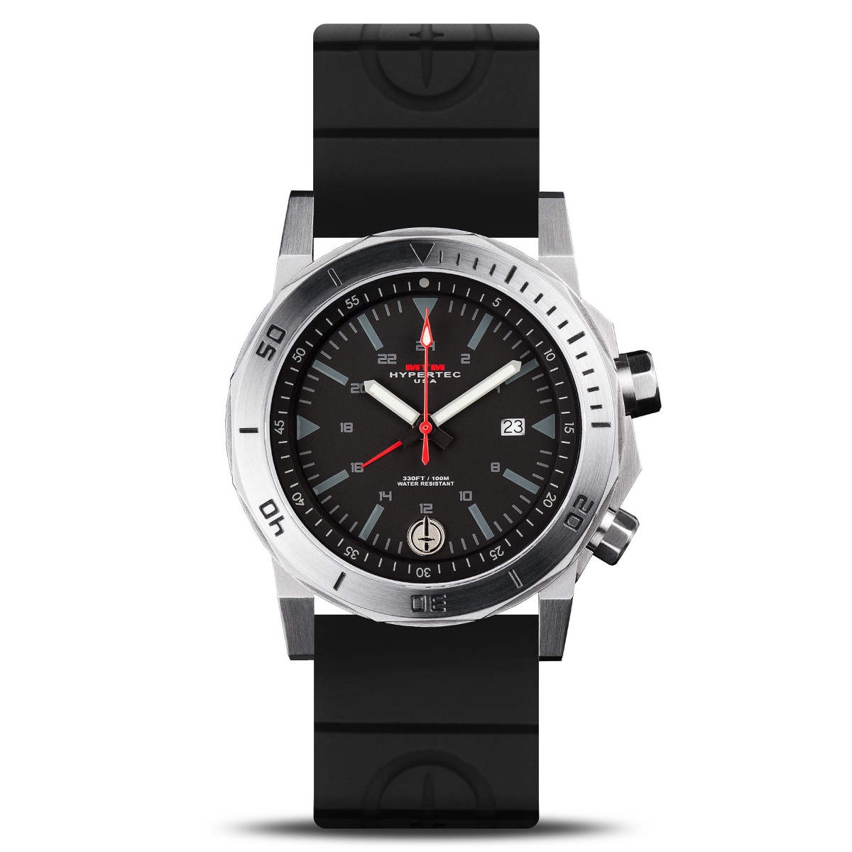 MTM Special OPS Watch H61SBDBKR2MTM 42 mm Hypertec H-61 Quartz Date Mens Watch - Silver, Black Dial & Black Rubber I
