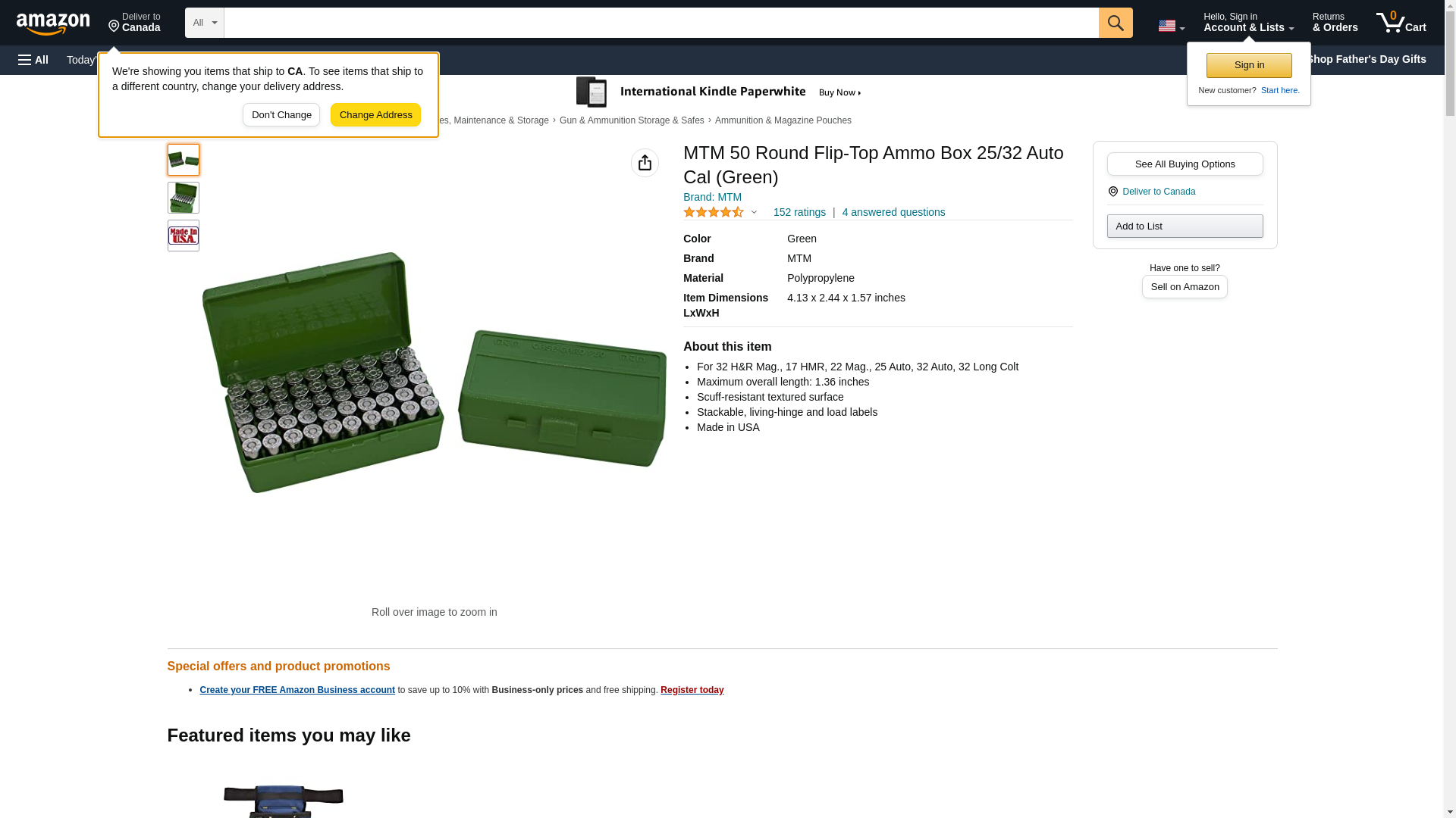 MTM Flip-Top Ammo Box 25 ACP to 32 S&W Long 50-Round Plastic Green