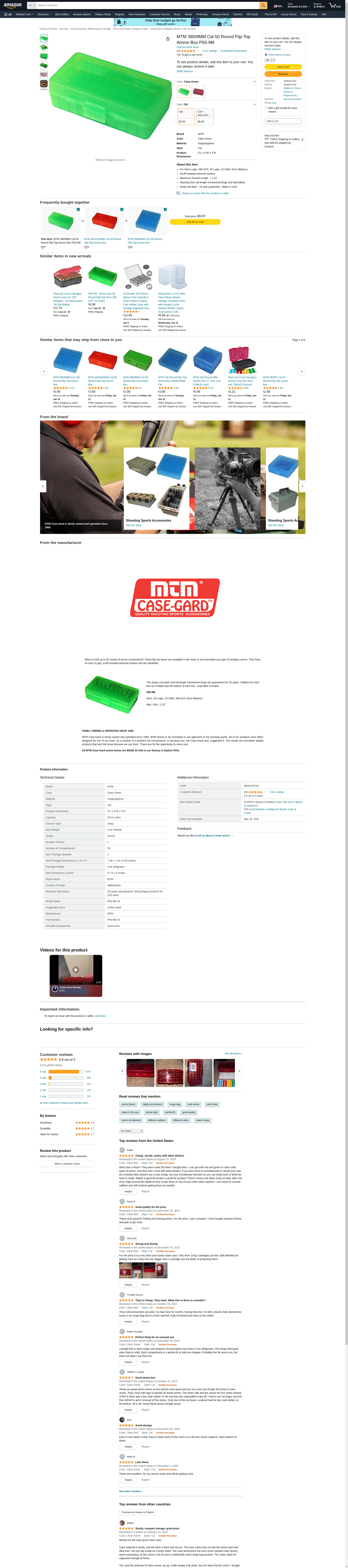 MTM 380/9MM Cal 50 Round Flip-Top Ammo Box, Clear Green