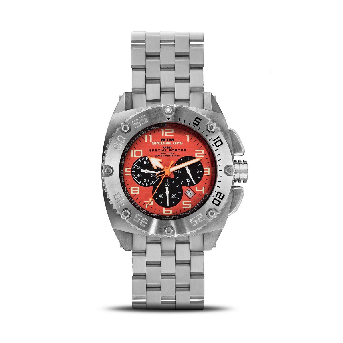 MTM Special OPS Watch PTSTODTITMTM 44.5 mm Patriot Quartz Chronograph Bracelet or Strap Mens Watch - Silver Titanium & O