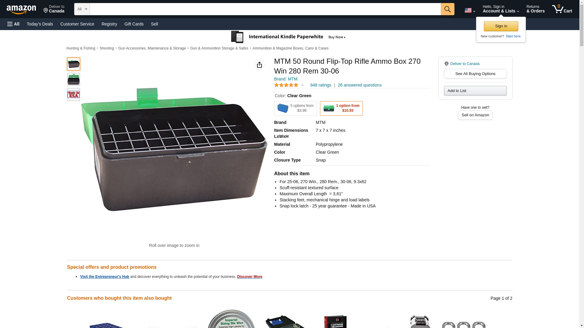 MTM 50 Round Flip-Top Rifle Ammo Box 270 Win 280 Rem 30-06, Clear Green