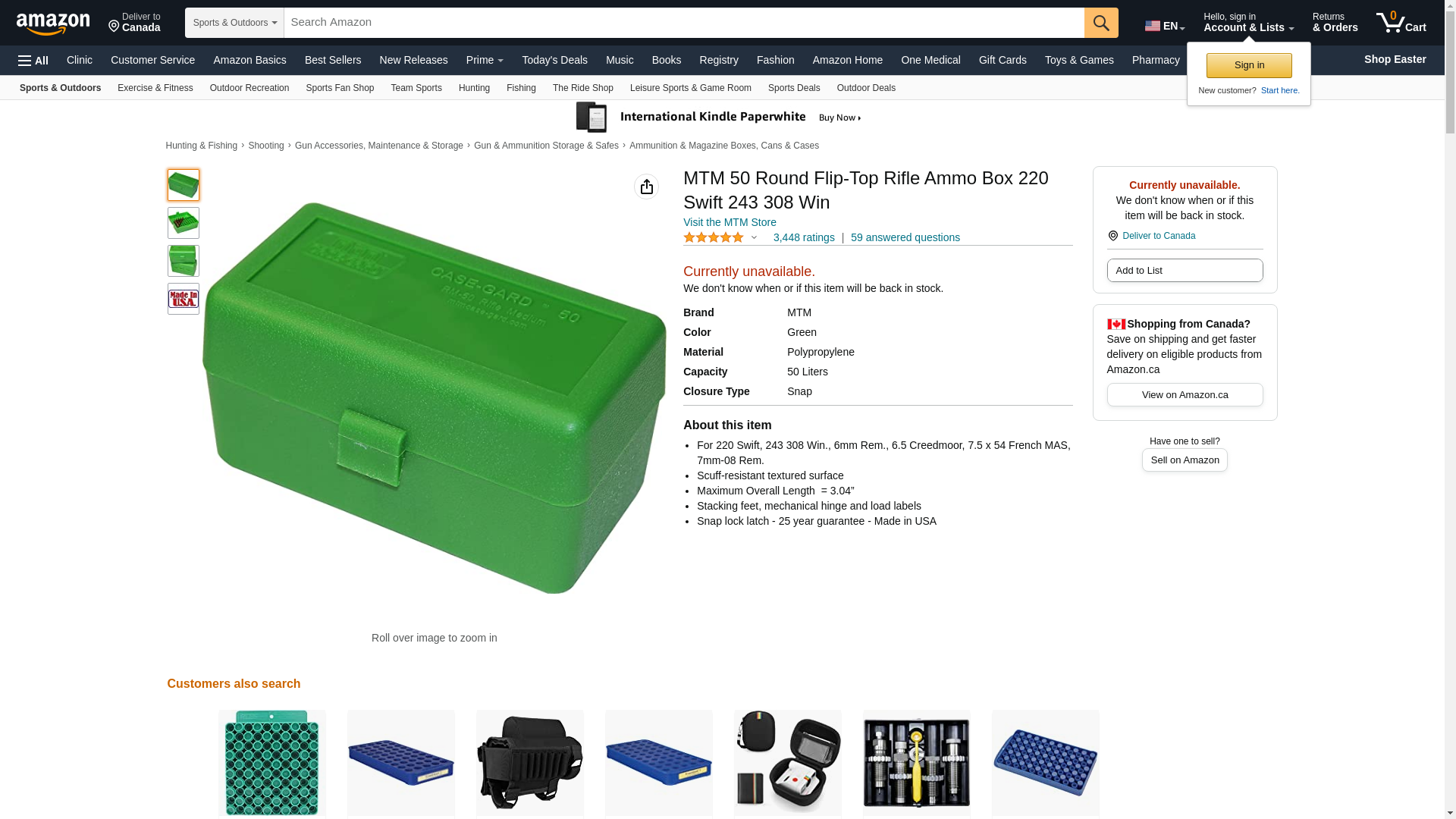 MTM 50 Round Flip-Top Rifle Ammo Box 220 Swift 243 308 Win, Green