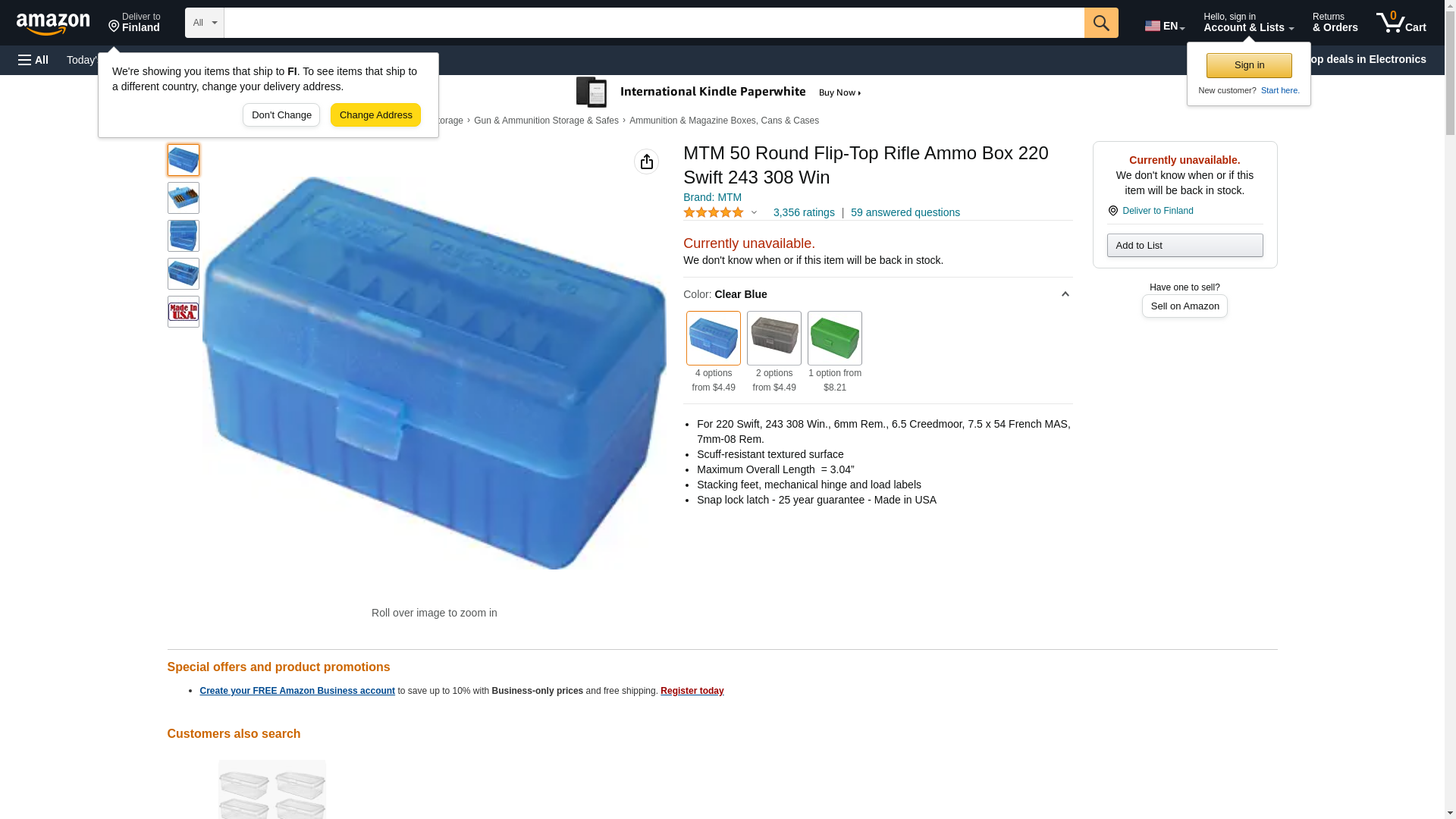MTM 50 Round Flip-Top Rifle Ammo Box 220 Swift 243 308 Win, Blue
