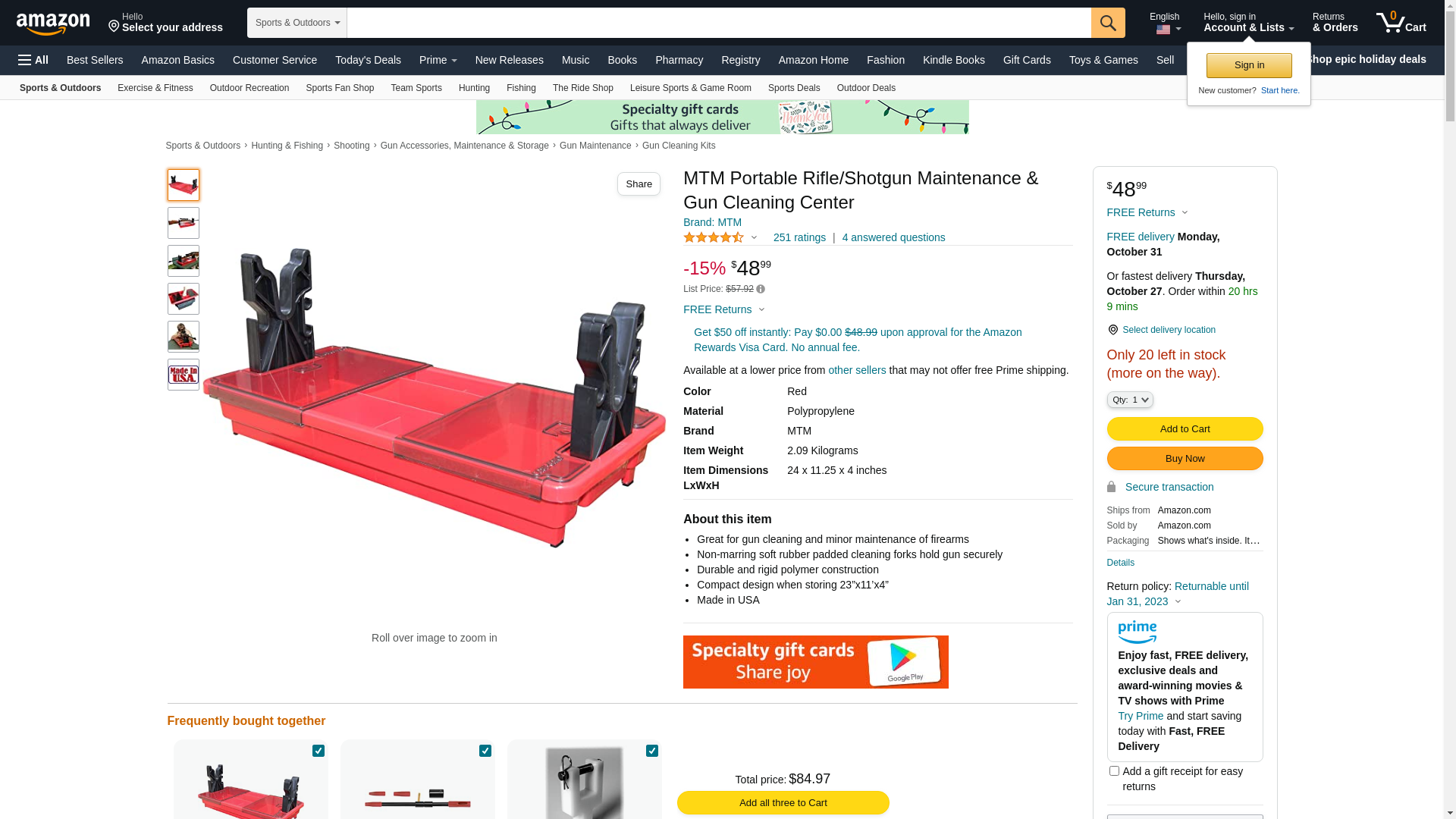 MTM Portable Rifle/Shotgun Maintenance & Gun Cleaning Center,Red