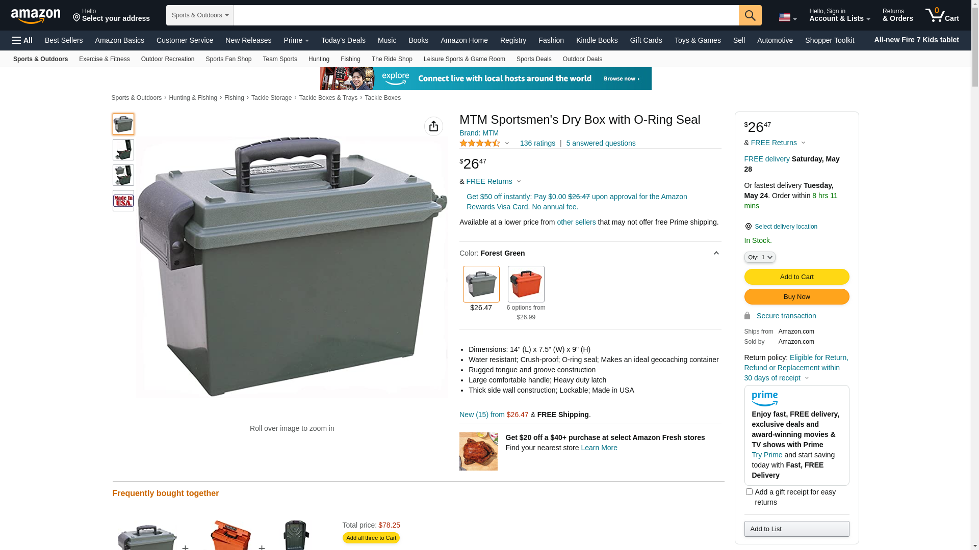 - Sportsmen's Dry Box is water resistant, crush-proof and has O-ring seal