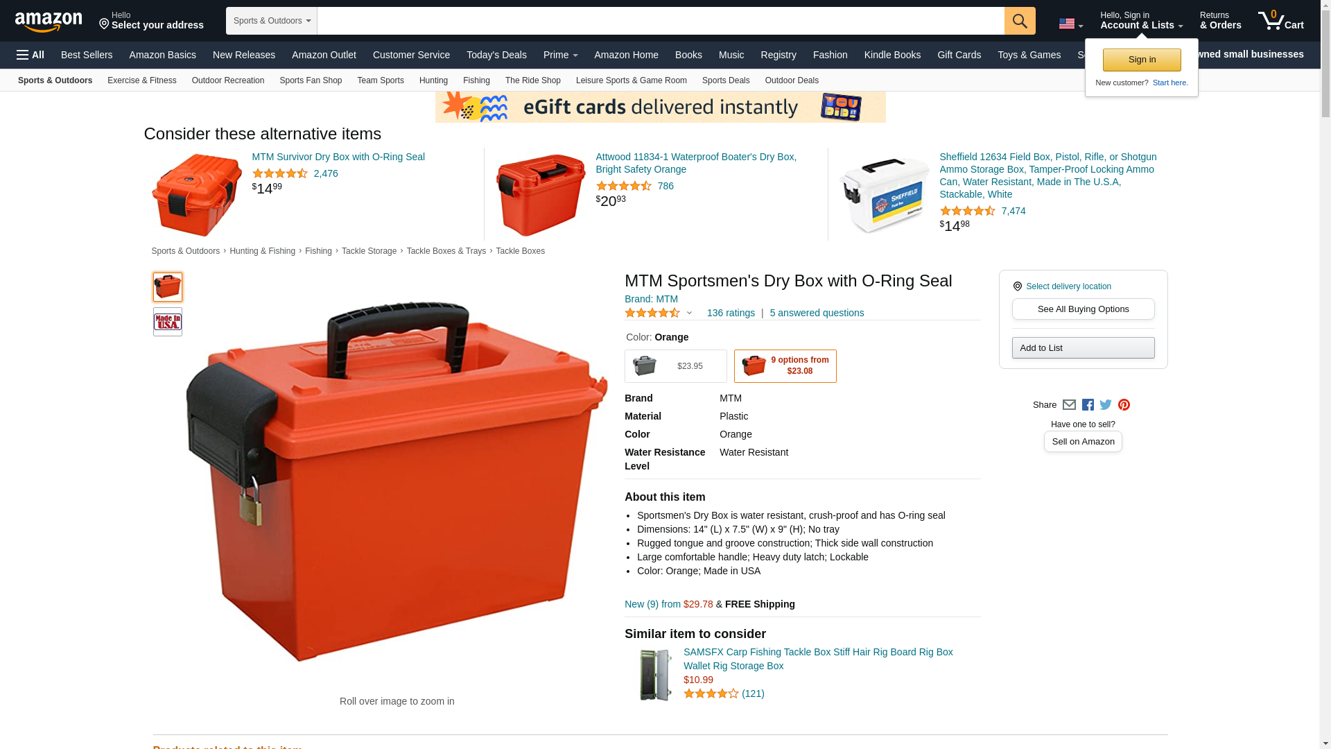 | Feature | "Sportsmen's Dry Box is water resistant, crush-proof and has O-ring seal" |