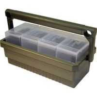 MTM Shotshell Box Caddy Army Green with 4 Shell Stack 25-Round Shotshell Boxes Clear