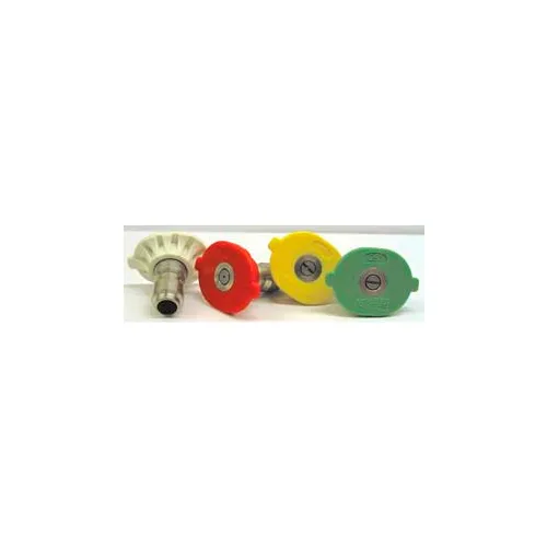 Features: MTM Hydro-Hydrojet 4000 psi Quick Connect Nozzle 0, 15, 25, and 40 degree 4-Pack 3.0.MTM Hydro's 4000 PSI Quick Connect Nozzle 4-Packs offer the performance of a threaded nozzle with the ease-of-use of a quick-connect fittingEach pack contains a 0, 15, 25, 40 degree nozzle for all your cleaning needsNozzles are color-coded and laser-etched for easy spray pattern and orifice identificationConstructed out of hardened stainless steel and long-life plastic for added durability, Lot of 1