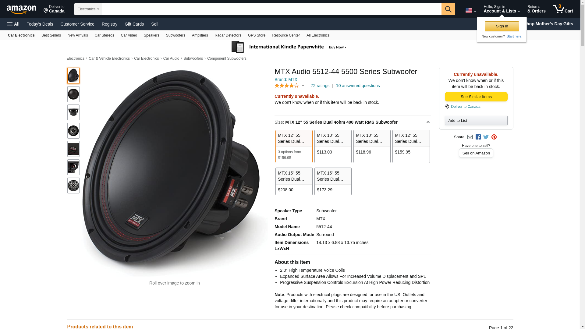 FREE 2-day Shipping: High thump-to-dollar ratio MTX's 55 Series subs give you huge boom for the buck, and the 5512-44 12 subwoofer epitomizes that
