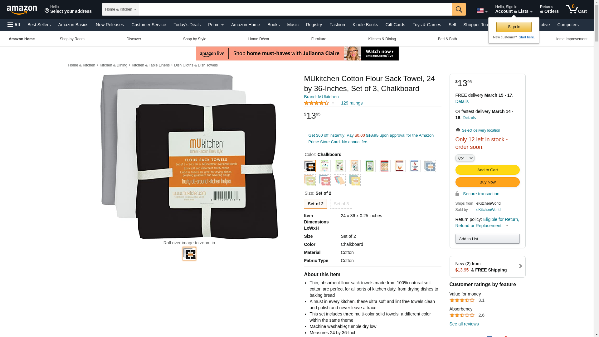 | Feature | Thin, absorbent flour sack towels made from 100% natural soft cotton are perfect for all sorts of kitchen duty, from drying dishes to baking bread |
