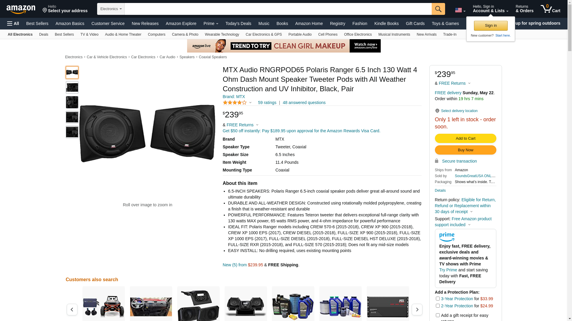 Take your tunes to the next level with these MTX Audio RNGRPOD65 Polaris Ranger 6.5 Inch Speakers. Packed with a powerful performance of 130 watts max, versatile compatibility, and easy installation, you'll be ready to hit the road with your bumping sound system in no time. These pods are constructed using molded polypropylene, creating a weather-resistant and durable finish. Each speaker enclosure includes a 6.5-inch coaxial speaker featuring a clear Teteron tweeter that delivers exceptional full-range clarity. With 130 watts of MAX power, 65 watts of RMS power, and 4-ohm, these audio speakers are sure to impress. The speakers mount directly in front of the driver and passenger ensuring music can be heard clearly even at high speeds. For easy installation, no cutting or drilling is required. Designed to deliver high output sound without sacrificing any legroom, these speaker pods are easy to install and are color/ texture matched for that OEM look. Ideal fit for Polaris Ranger models including CREW 570-6, CREW XP 900, CREW DIESEL (2015-2018), CREW XP 1000 EPS (2017), FULL-SIZE XP 1000 EPS (2017), FULL-SIZE XP 900, FULL-SIZE DIESEL, FULL-SIZE DIESEL HST DELUXE, FULL-SIZE RXR, and FULL-SIZE 570 (2015-2018); Does not fit any mid-size models.