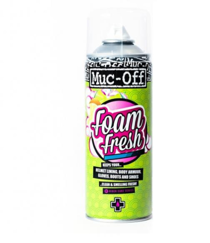 Muc-Off Foam Fresh is a highly effective, easy to use foam cleaner which is ideal for helmet liners or any soft material which comes into contact with the rider. Foam Fresh has an instant foaming action, which gently agitates dirt and grime away from the surface leaving a fresh Citric Burst fragrance. Even the cleanest looking riding gear benefits from this uniquely formulated product. It's awesome for use on pads, gloves, shoes, liners and body armour.