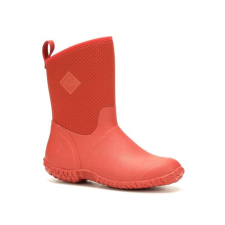 <p>Our best selling all-purpose shoe now in Mid height. These booties all day comfort wherever you go. Roll them down and they become a shoe! They will keep your feet warm and dry on those cool, wet mornings. This classic a new high traction, rubber outsole and even better contact with wet surfaces. The outsole design will shed debris easily. Whether you?re in the garden, running errands, or walking the dog, you?ll enjoy these. Green and Purple have a floral lining. Black and Pink have a tonal solid lining. </p> <b>Features</b> <ul> <li>Womens Muckster Mid II Boot</li> <li>4mm CR Flex-Foam</li> <li>Breathable, Airmesh LiningRolls Down to Ankle HeightPurple and Green have a beautiful floral lining</li> <li>Self Cleaning Outsole</li> <li>High Traction Rubber Outsole</li> <li>Women?s Last</li> <li>Rolls Down to Ankle Height</li> </ul> <b>Specifications</b> <ul> <li><b>Color:</b> Orange/Roses Print</li> <li><b>Size:</b> Size 5</li> <li><b>Material:</b> Rubber/Neoprene</li> <li><b>Gender:</b> Womens</li> </ul>- SKU: HNYW331