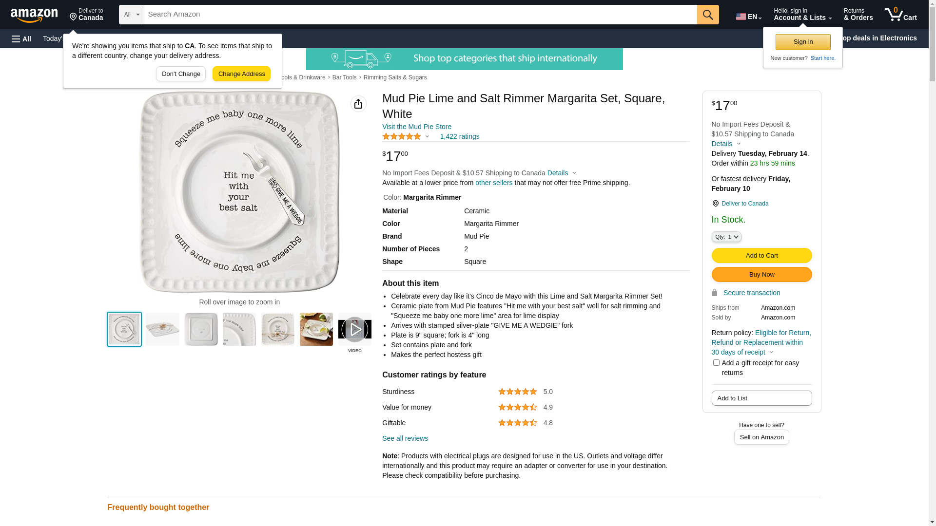 - Ceramic plate from Mud Pie features "Hit me with your best salt" well for salt rimming and "Squeeze me baby one more lime" area for lime display