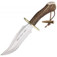Muela Apache Red Stag Horn Handle Hunting Knife with Leather Sheath, 7-5/8"