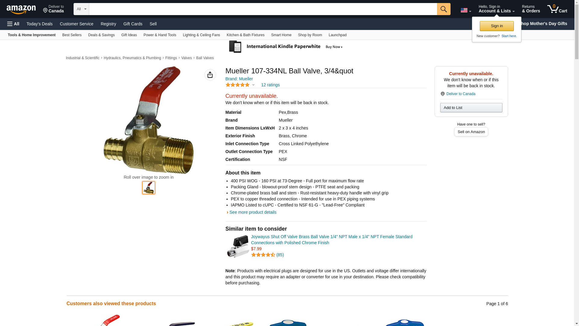 Mueller 107-334NL Ball Valve, 3/4"