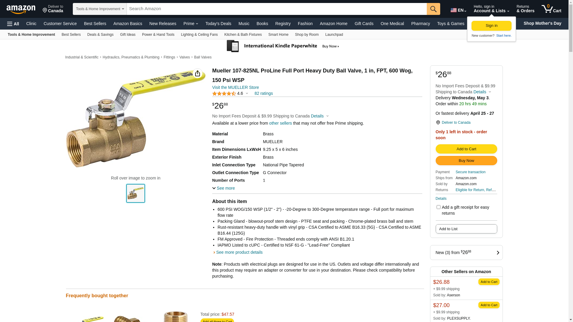 Mueller 107-825NL Valve brass ball threaded 1in 1BALLVALVELF