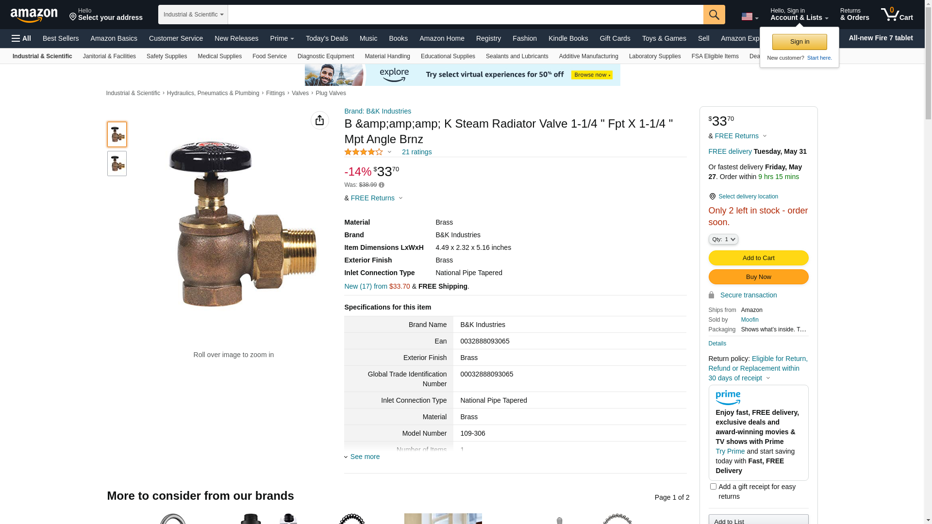 109-306 VLV RAD STEAM AGL 1-1/4 from Mueller Streamline