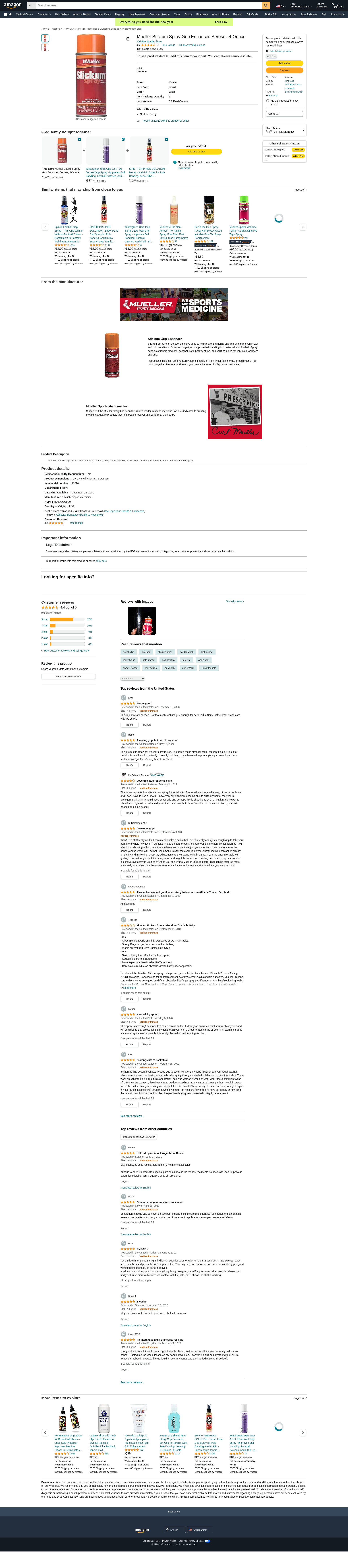 Mueller Stickum Spray Grip Enhancer, Aerosol, 4-Ounce: Maxedbuy.com