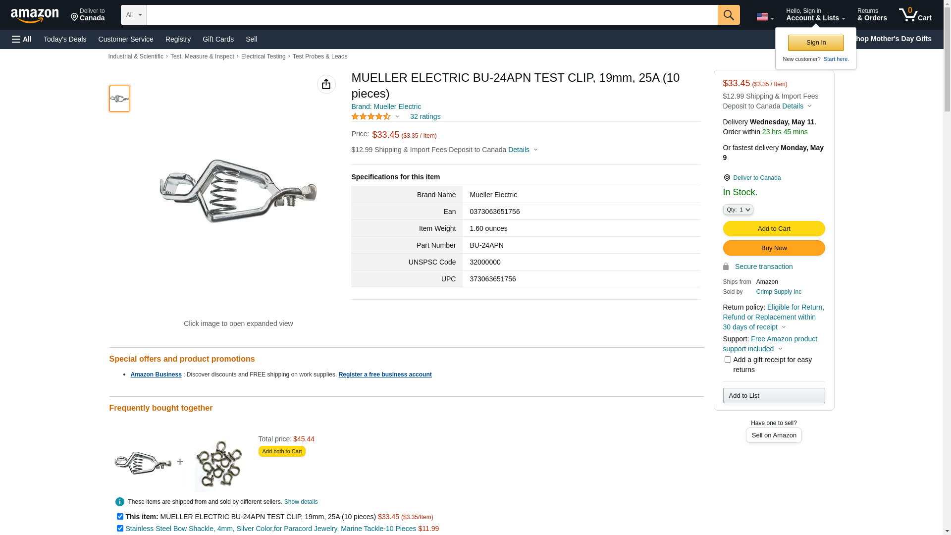 Mueller Electric BU-24APN Test Clip, 19mm, 25A