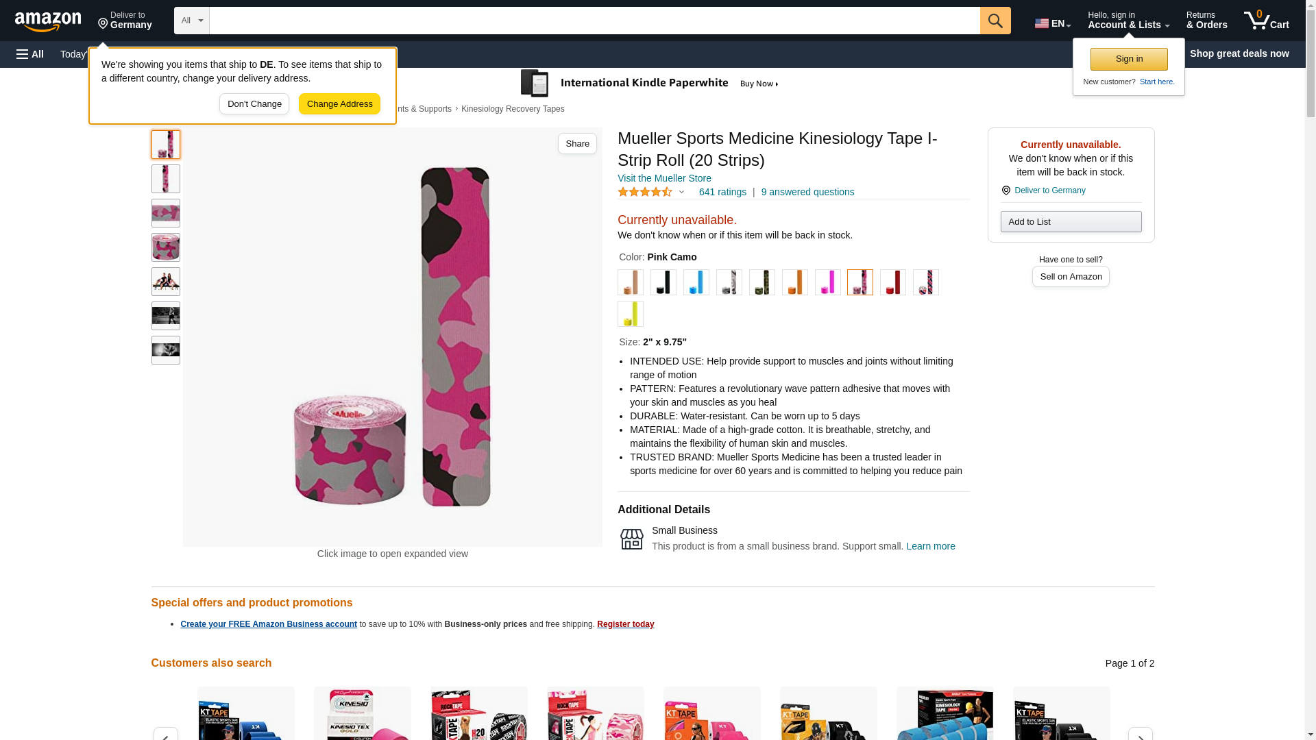 Mueller Sports Medicine Kinesiology Tape I-Strip Roll (20 Strips), Pink Camo, 2" x 9.75"