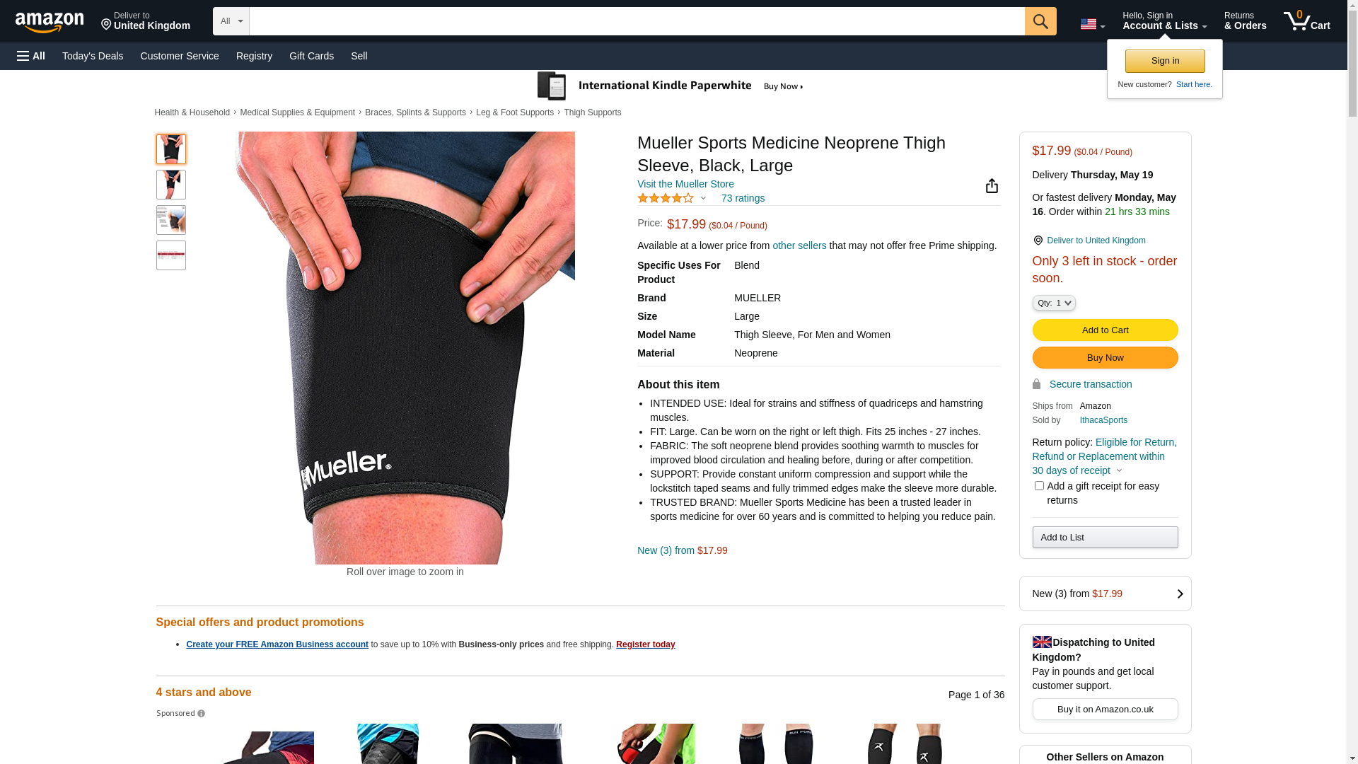Mueller Sports Medicine Neoprene Thigh Sleeve, Black, Large