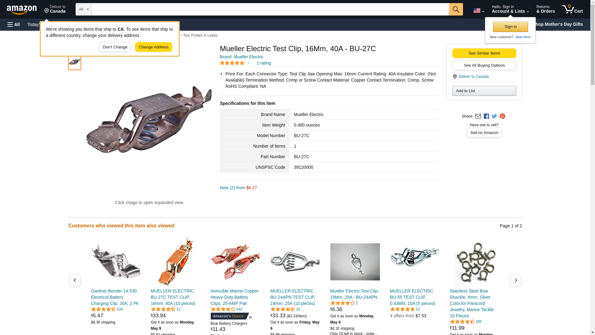 Mueller BU-27C Clip, 40, Copper, Electronic ignition testers, BU Series (1000 pieces)