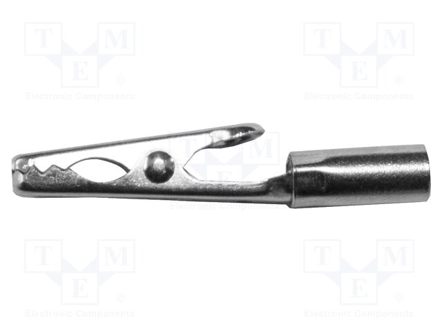 ALLIGATOR CLIP; Connector Type:Alligator Clip; Current Rating:5A; Jaw Opening Max:4.8mm; Insulator Colour:-; Product Range:-; Body Material:Steel; Contact Material:Steel; Contact Plating:Nickel Plated Contacts; Overall Length:1.5" RoHS Compliant: Yes