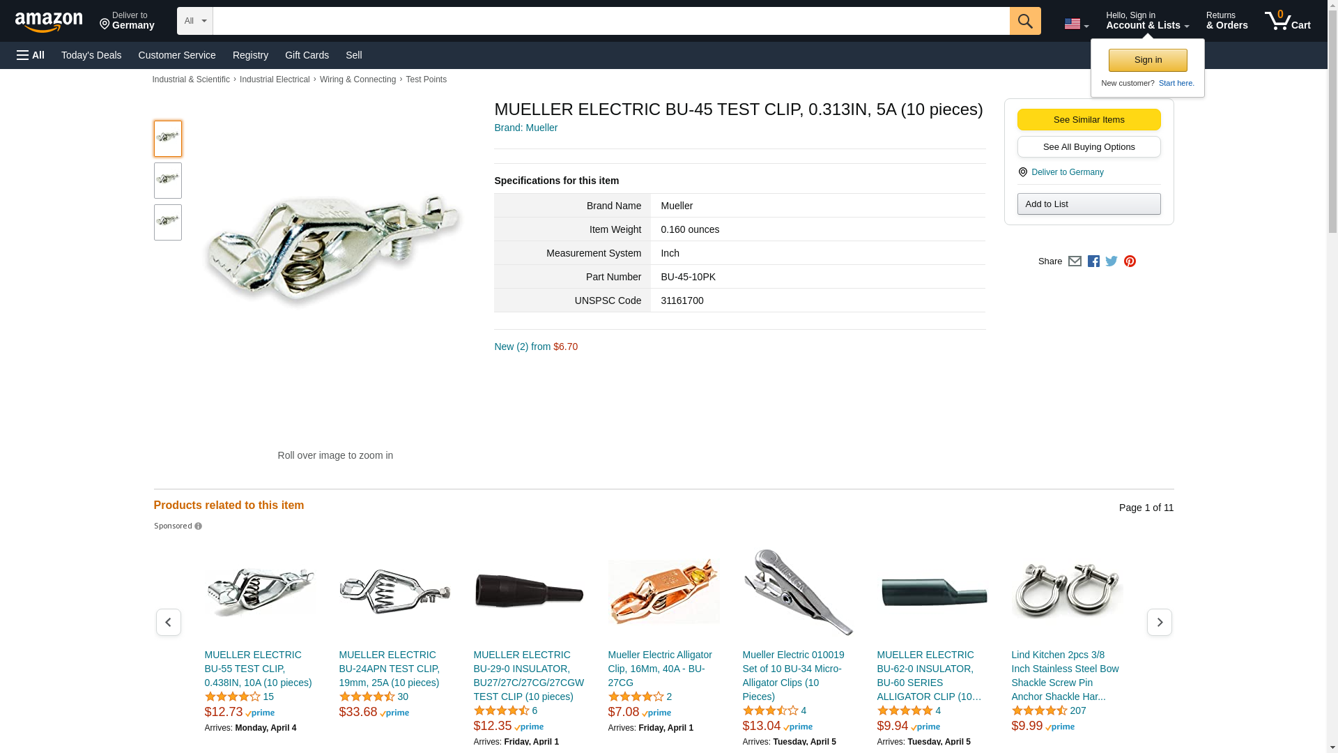 Mueller Electric BU-45 Test Clip, 0.313IN, 5A (50 Pieces)