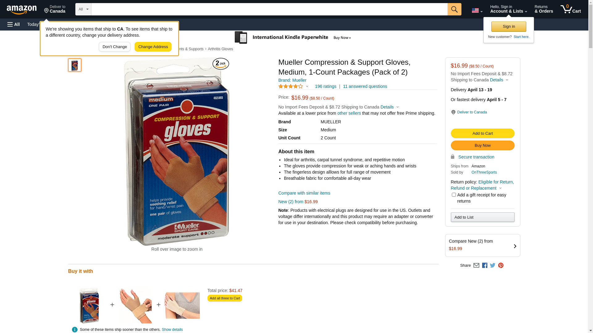 Mueller Compression & Support Gloves Medium 6903 2 EA - Buy Packs and SAVE (Pack of 2)
