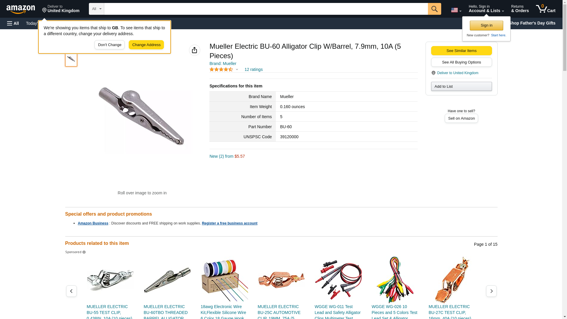 Mueller BU-60 Clip, Alligator; Steel; 0.13 in. (50 pieces)