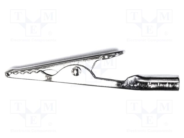 ALLIGATOR CLIP W/ BARREL, 7.9mm, 10A; Connector Type:Alligator Clip; Current Rating:10A; Jaw Opening Max:7.9mm; Insulator Colour:-; Product Range:-; Body Material:Steel; Overall Length:1.969"; Termination Method:Crimp or Solder RoHS Compliant: Yes