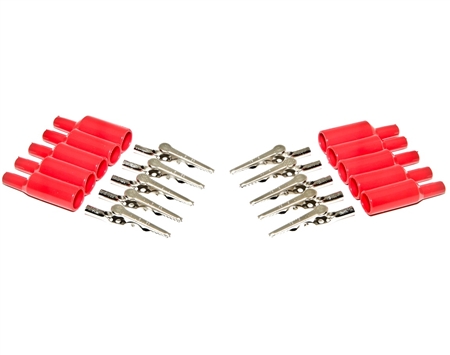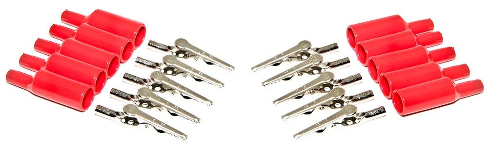 - Price For: Pack of 10 Connector Type: Alligator Clip Current Rating: 10A Insulator Color: Red Termination Method: Crimp or Solder RoHS Compliant: Yes