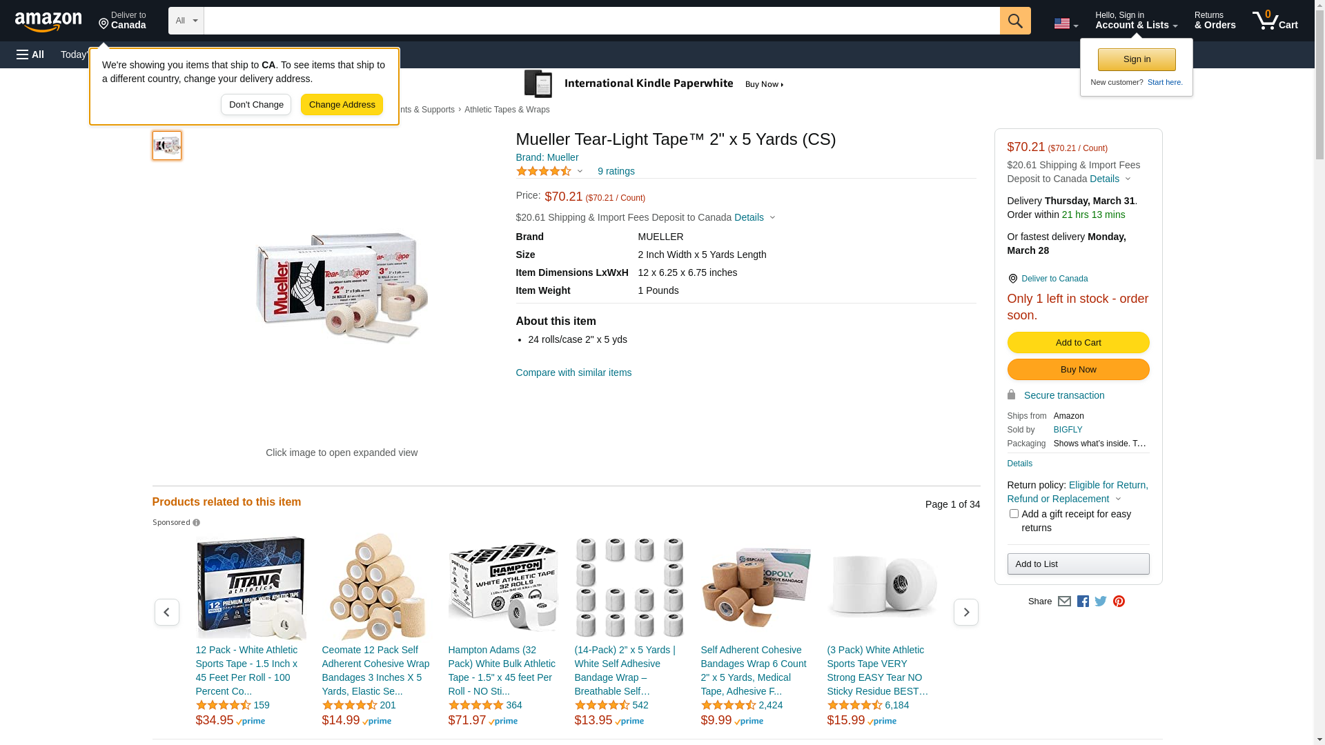 Mueller Tear-Lite Adhesive Tape (2" x 5 yds stretched 24 rolls/cs - White)