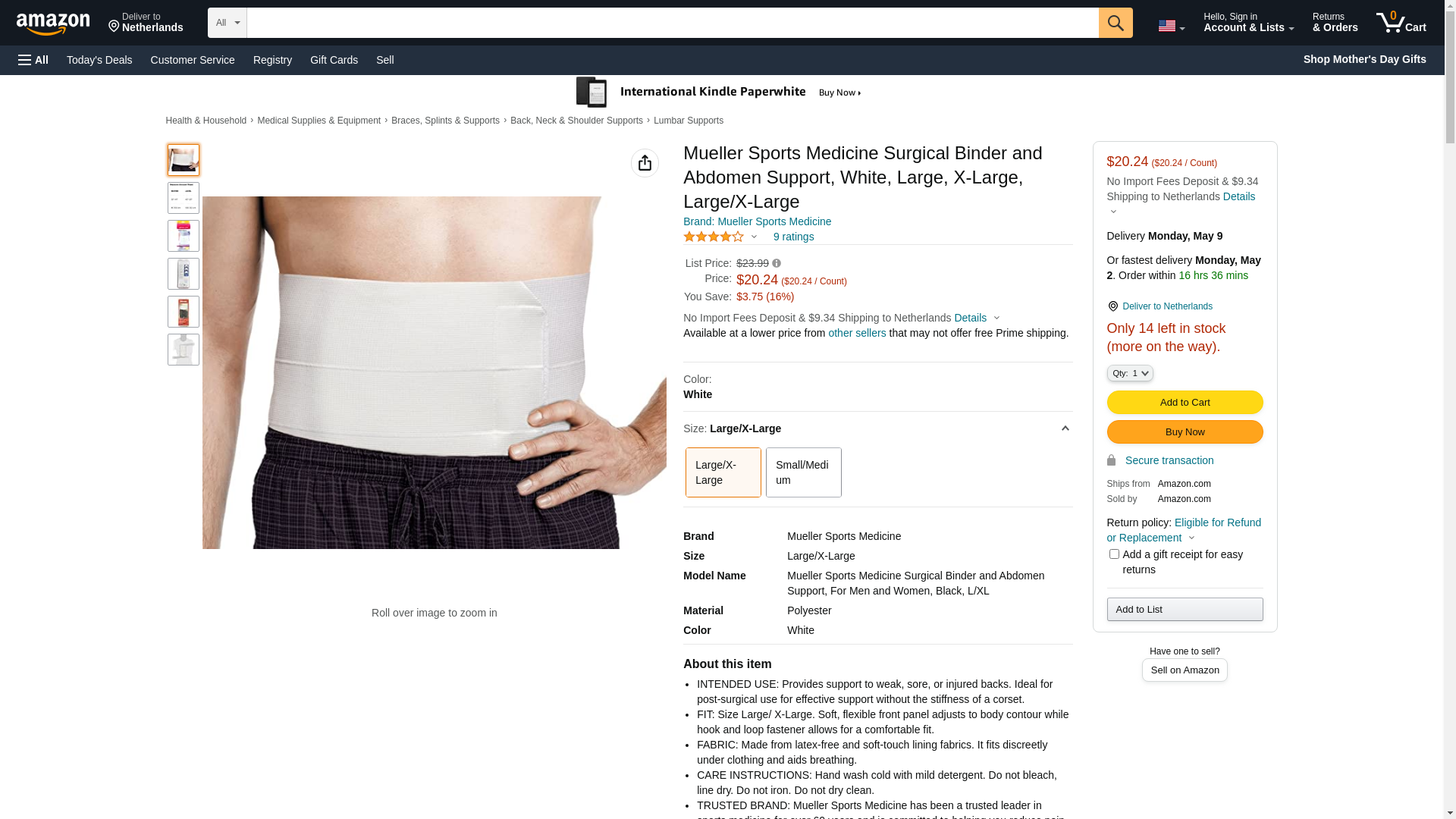 Mueller Sports Medicine Surgical Binder and Abdomen Support, White, Large, X-Large, Large/X-Large